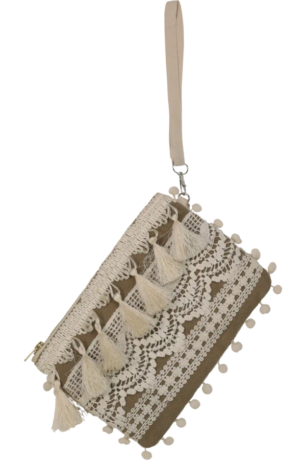 La Pochette in Tela con Pizzo della collezione SS26 di Miss Bikini Luxe è un accessorio versatile e raffinato.